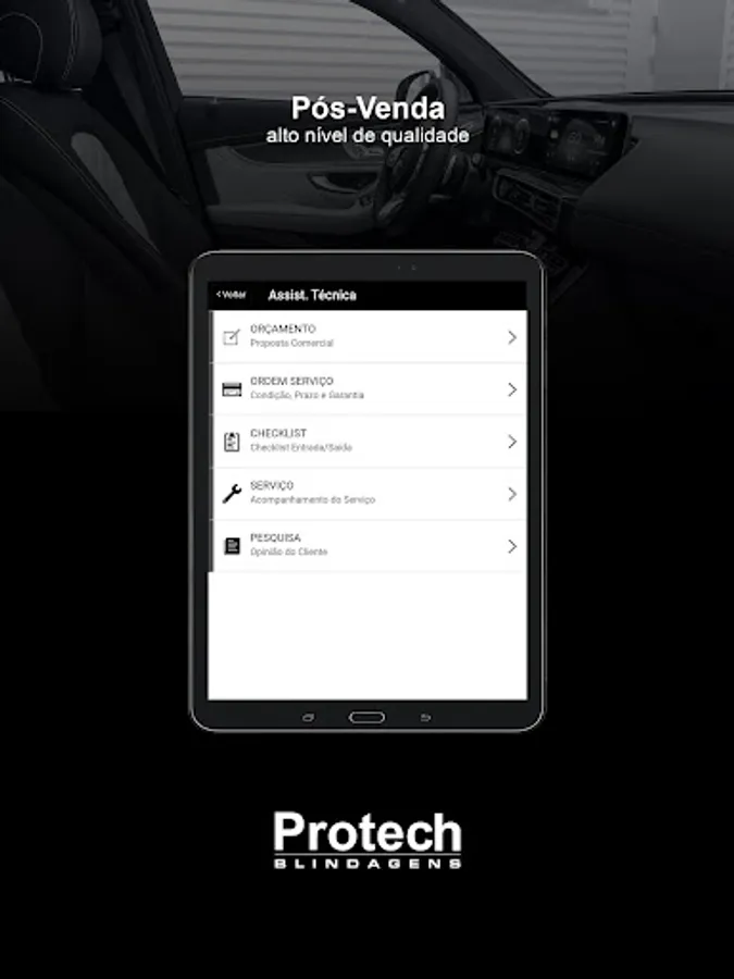 In addition to being specialized in the development of KBV (Vehicle Shielding Kit) projects of the best brands of domestic and imported vehicles, we have a differentiated service giving assistance throughout the national territory to ensure total peace of mind for our customers and partners. Protech is a shield regulated by the Ministry of Defense - Brazilian Army, which only uses ballistic materials from world-renowned companies.