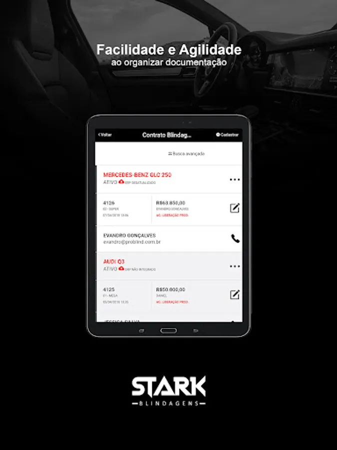 All STARK customers can use the application and track the progress of their vehicle's armor, as well as access sales / hiring data.