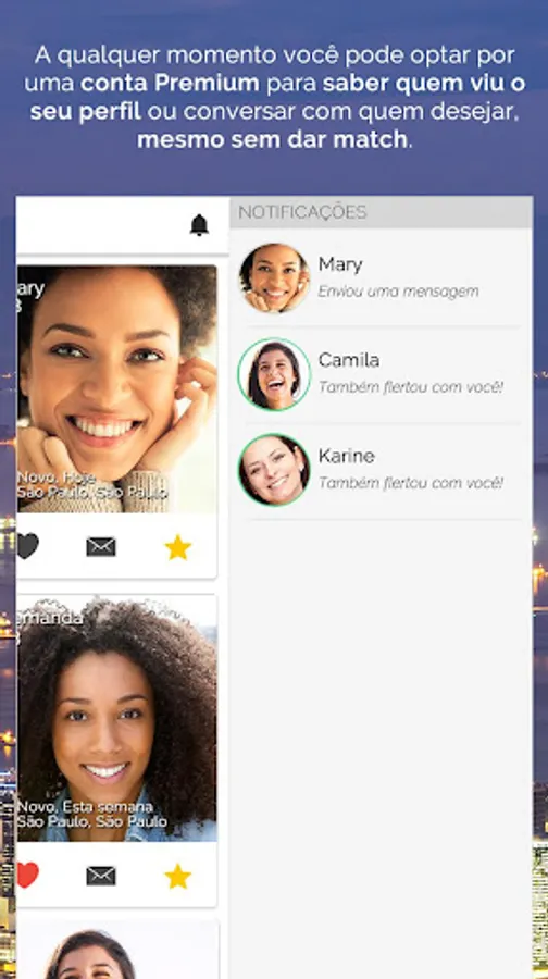 - Optionally, you can upgrade to a Premium account to find out who flirted with you, know who saw your profile, chat with everyone without limits, meet people from other locations and receive a ranking upgrade in other people's searches. You show up at the front and stand out from the crowd.