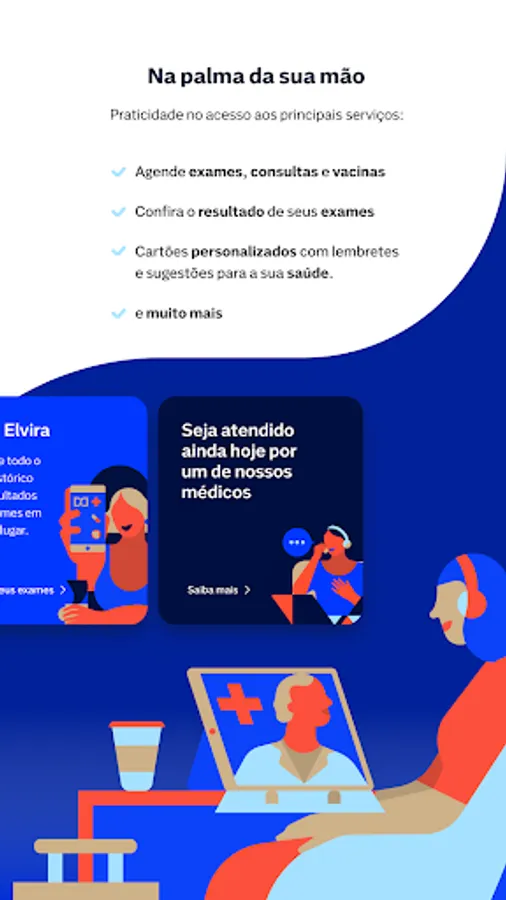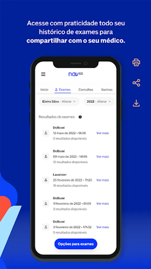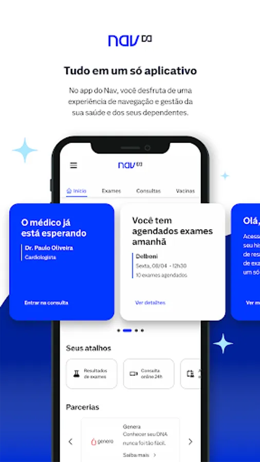 With Nav, you can receive medical care via scheduled or immediate online consultation, schedule exams and create a history with your results of exams performed in Dasa's laboratories.
