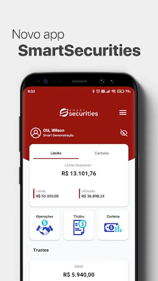 The SmartSecurities application allows access to query operations, portfolio monitoring, receipt flow, statement and day performance