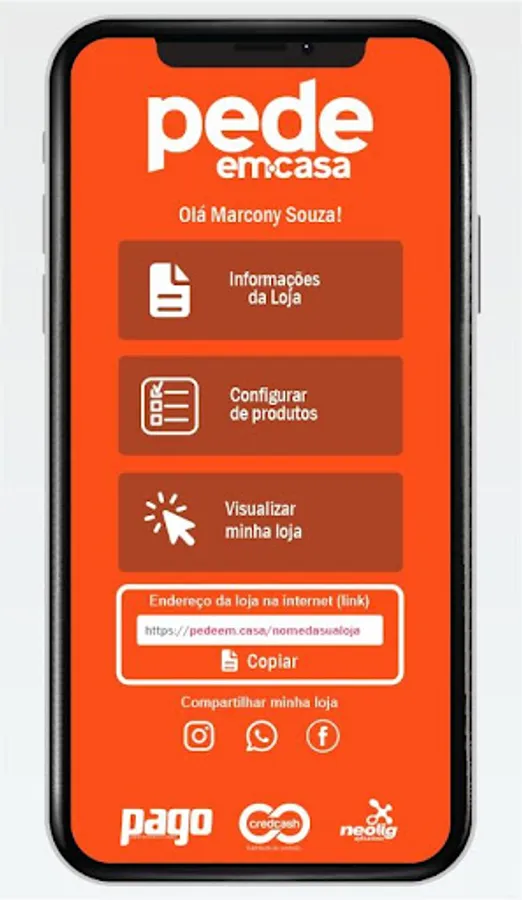 Professional version of the PEDE EM.CASA app - A super online store and digital menu creator app, to sell more on WhatsApp and on social networks
