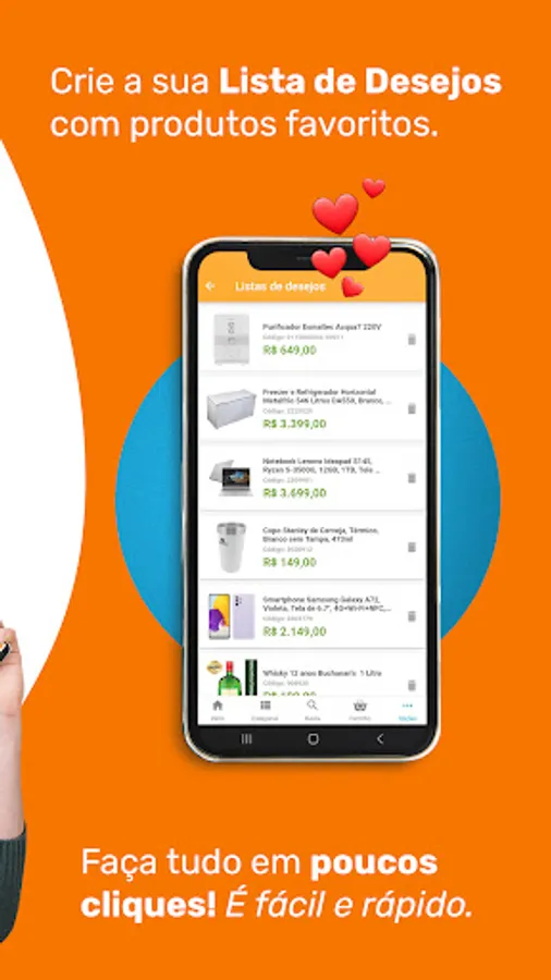 By downloading the app you will have several product options for Furniture, Appliances, Small Appliances, Computers, Mobile, Audio and Video, Air Conditioning and Supermarket. Activate notifications to stay on top of the best deals and discount coupons.
