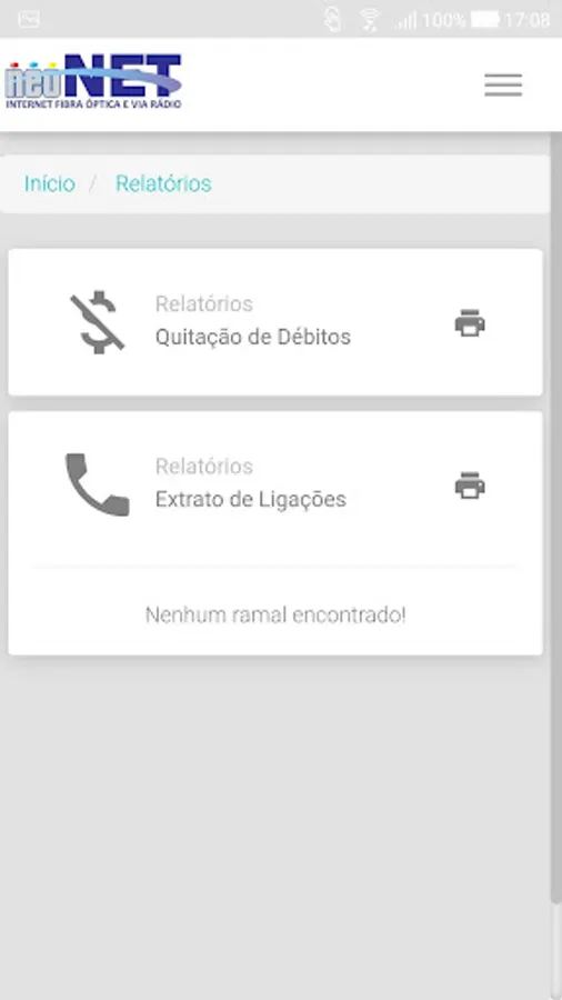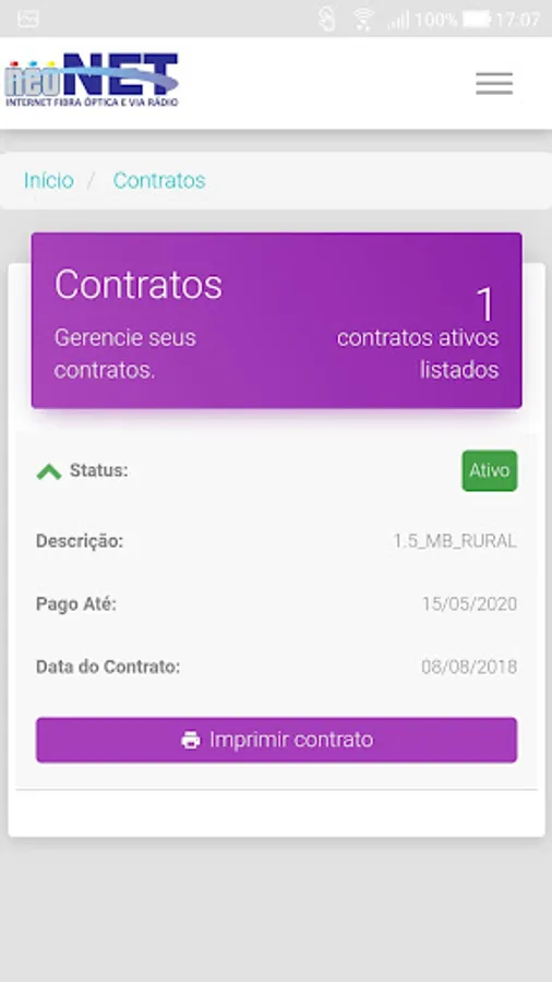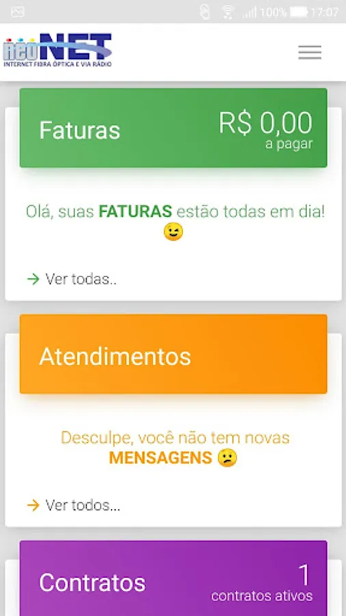 In the central application of the neoNET PORTO subscriber, you can pay your bill using the slip or pix modalities and even request to put it in automatic debit if you wish, you can also access invoices, see internet consumption, take some reports and check contracts, all this in the palms of your hand.