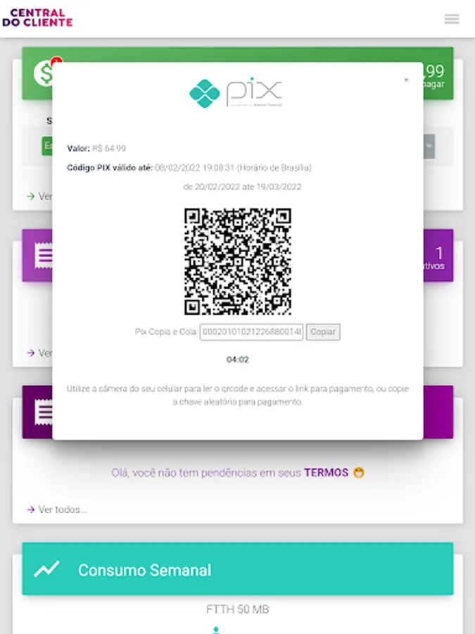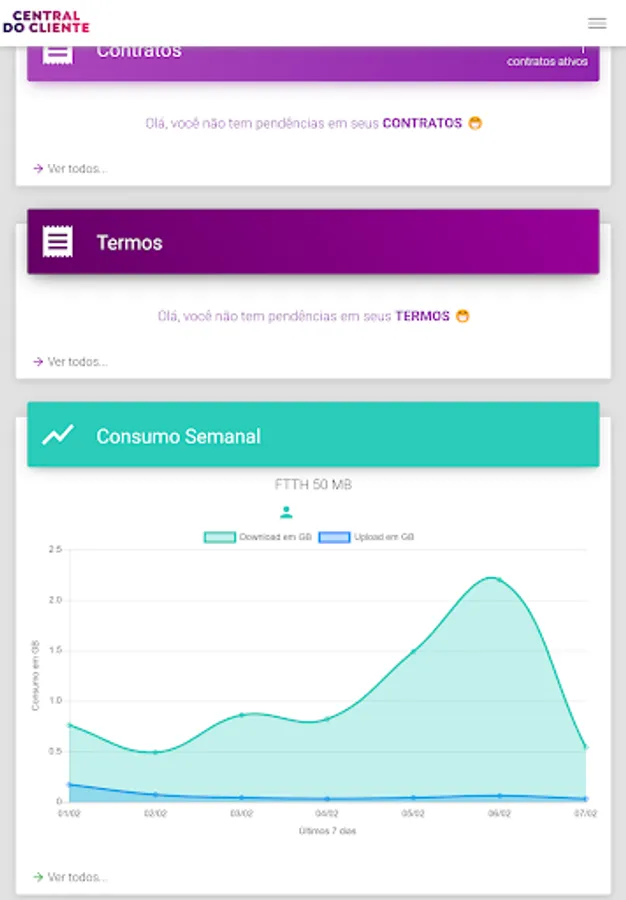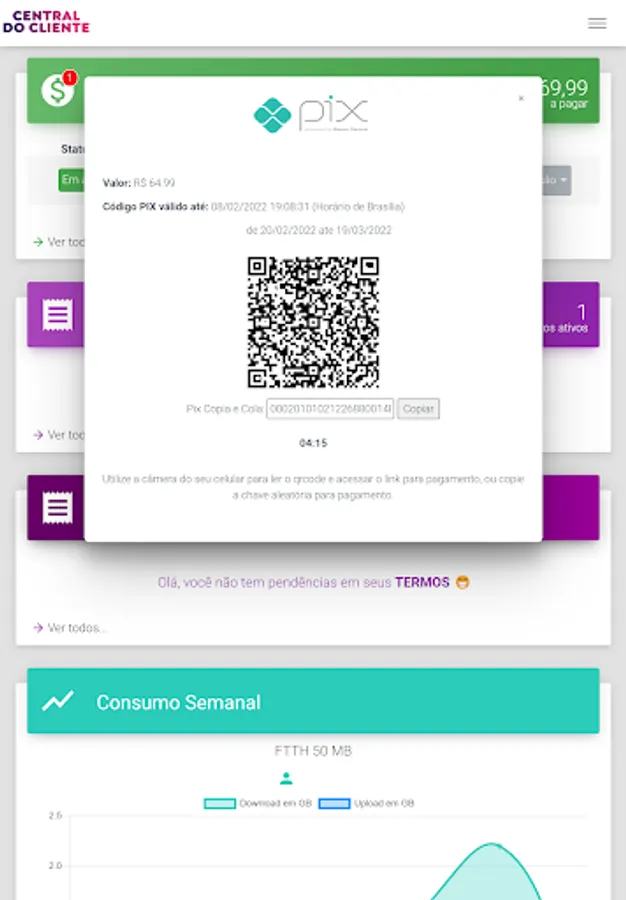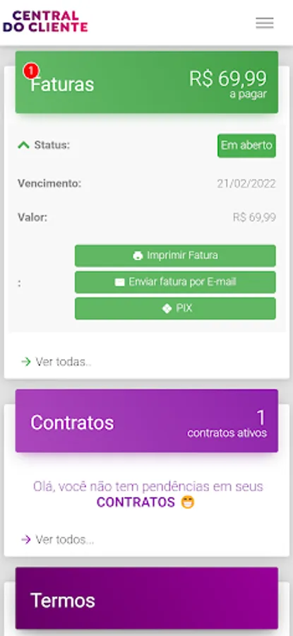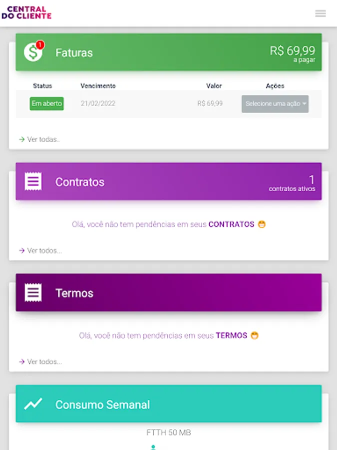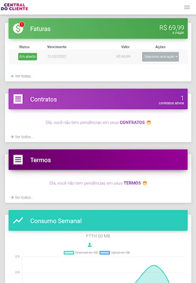 Here in our app you can view your ticket and pay via pix, barcode and much more. You can view your contracts, your consumption and update some of your data.