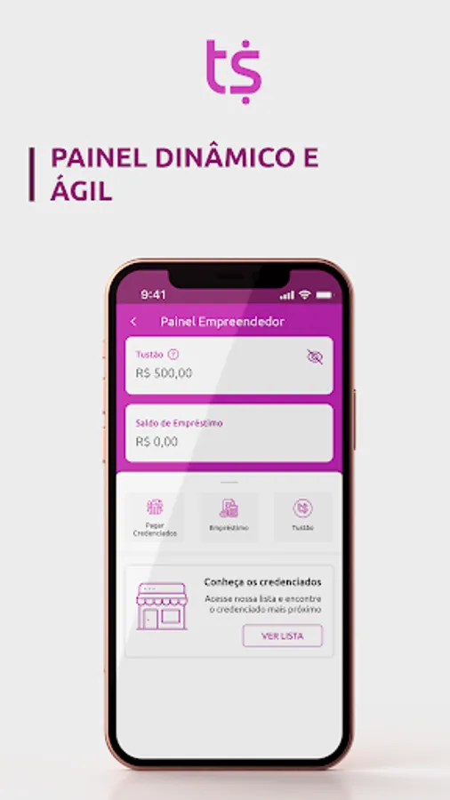 Credit simulation has no bureaucracy and hiring is done directly through the app quickly, easily and safely.