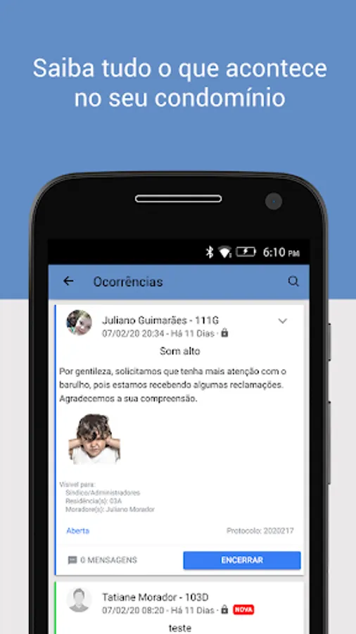 Receive notifications on your cell phone of everything that happens in your condominium.
