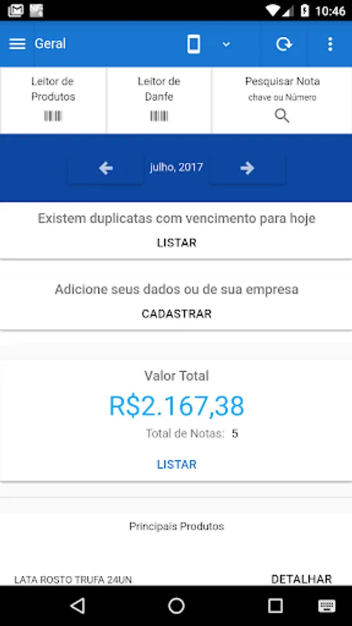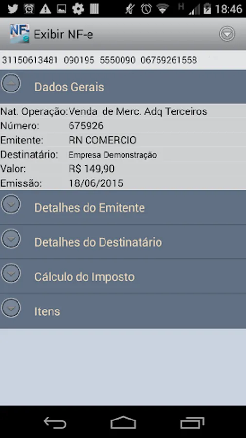 Manage Electronic Invoice, Electronic Transportation Knowledge and consumer coupons contained in your device, attached in email, in cloud service (such as drive and dropbox) or by reading qrcode / barcode. When you open the program it will find all the NF-e. Click on some to see details of the note with the main information of DANFE. Manage your purchases and sales in a practical way.