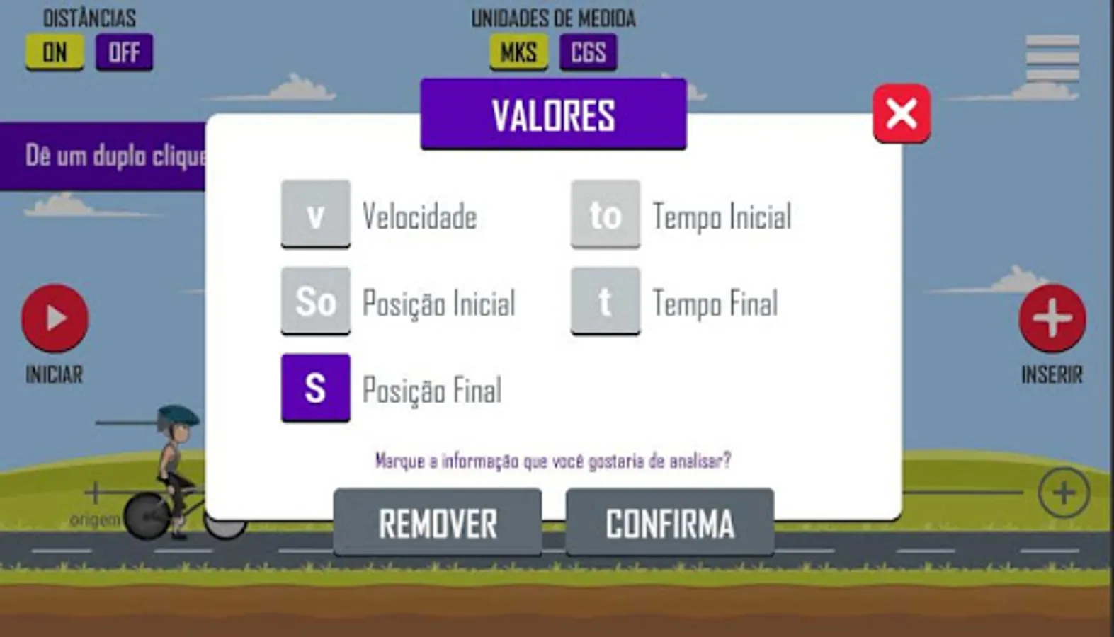 For example: providing the initial position values, velocity and time, the simulator shows you the final position of the mobile through his animated displacement.