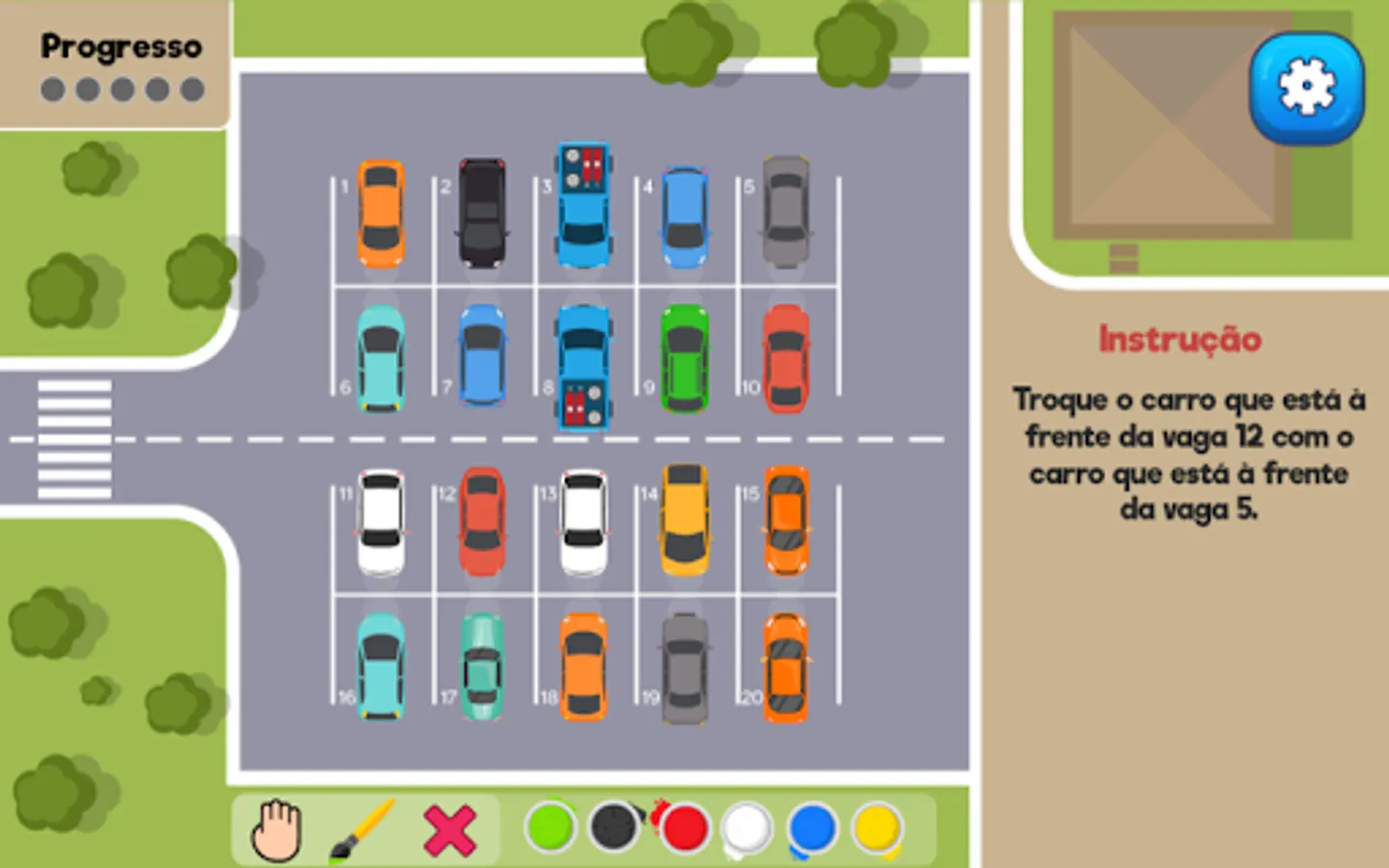 Moves, colors and / or mark with an x the parking car according to the instructions given.