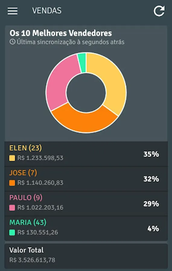 With DashLink, you'll have the "business at your fingertips," and you'll be able to see a variety of graphs and analytical reports that give you a broad, instant view of your business performance and results. The information is updated and made available for consultation at intervals of a few seconds. DashLink integrates easily with commercial management software SinCom and iCompany, both developed and maintained by NorteLink Sistemas.