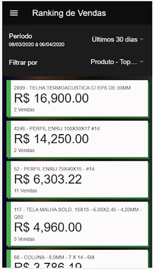 An application aimed at management information, in it you can access the main information of your company that are within Our ERP, such as cash flow, sales ranking, cash closings, average ticket among other reports