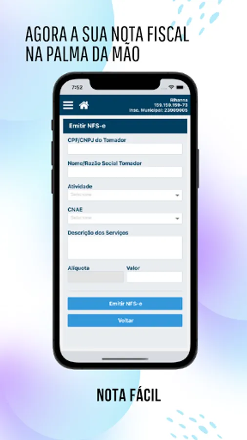 The Nota Fácil application is an innovative tool from Nota Control Tecnologia, aimed at issuing Invoices for Electronic Services through mobile devices, such as Smartphones and Tablets.