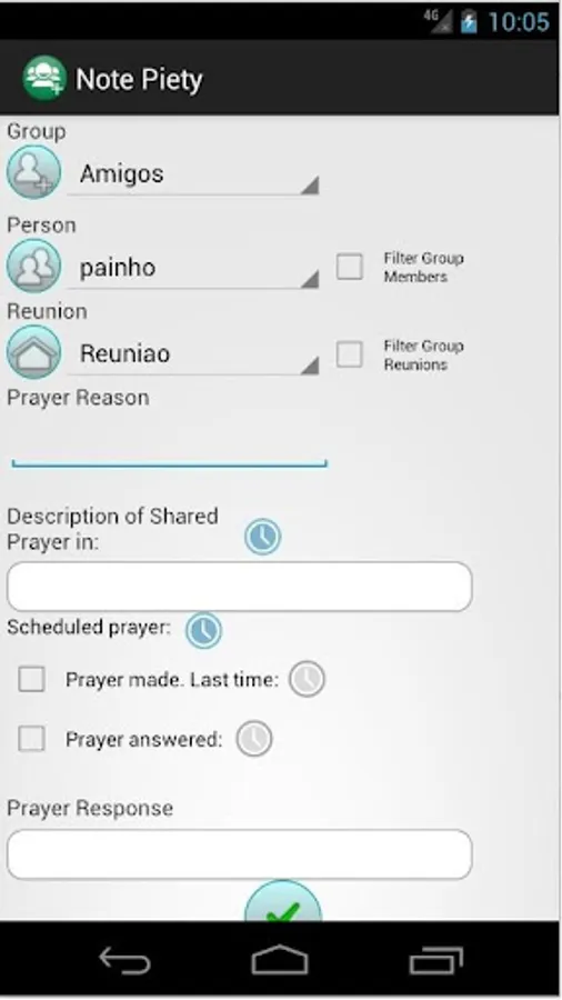 - Control of prayers made, answered and scheduled