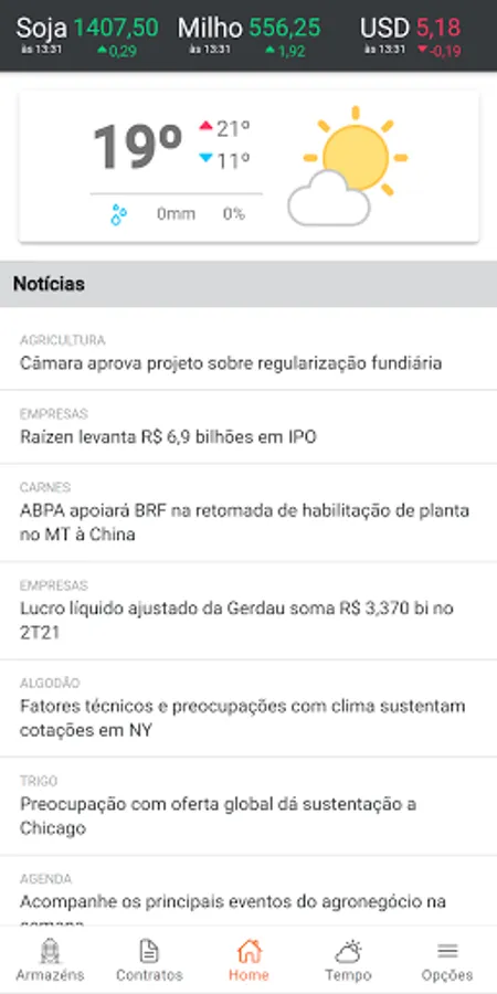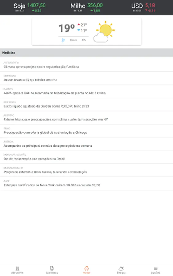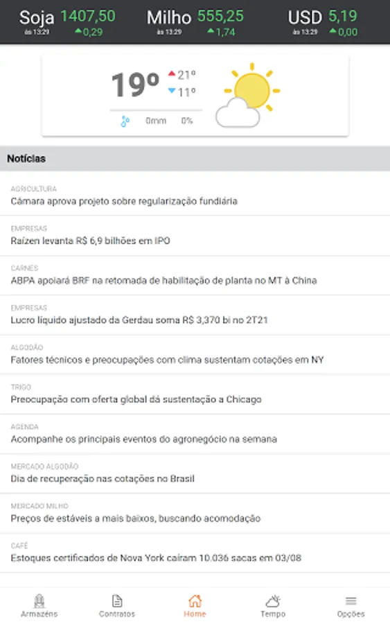 Nova Agri application for growers' access. With it, it is possible to view news, quotes, view and sign documents, and so on.