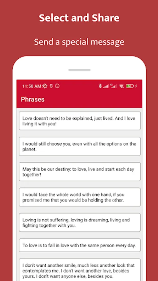 Inspiring Love Phrases: The app offers over a hundred phrases carefully selected to convey genuine feelings of love, passion and affection. .