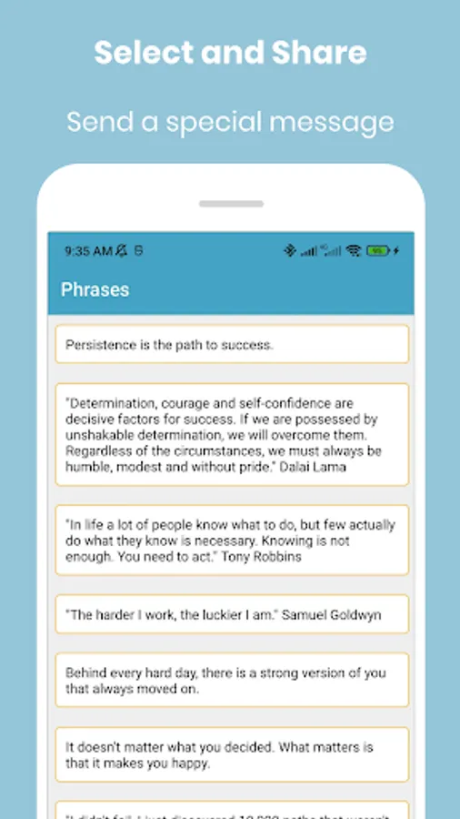 In addition to simple phrases, also share beautiful images of motivation, customize it your way, changing colors, fonts and other options and send it to your groups or contacts.