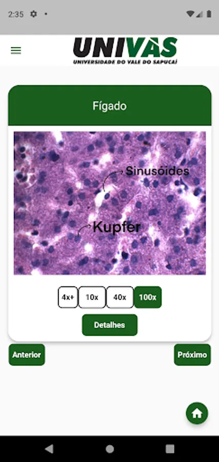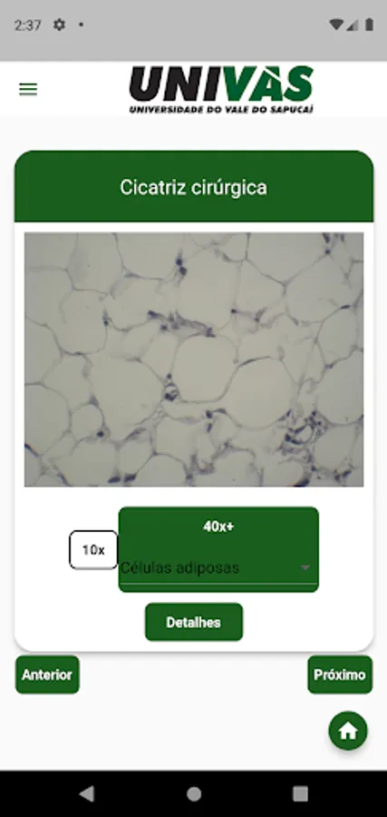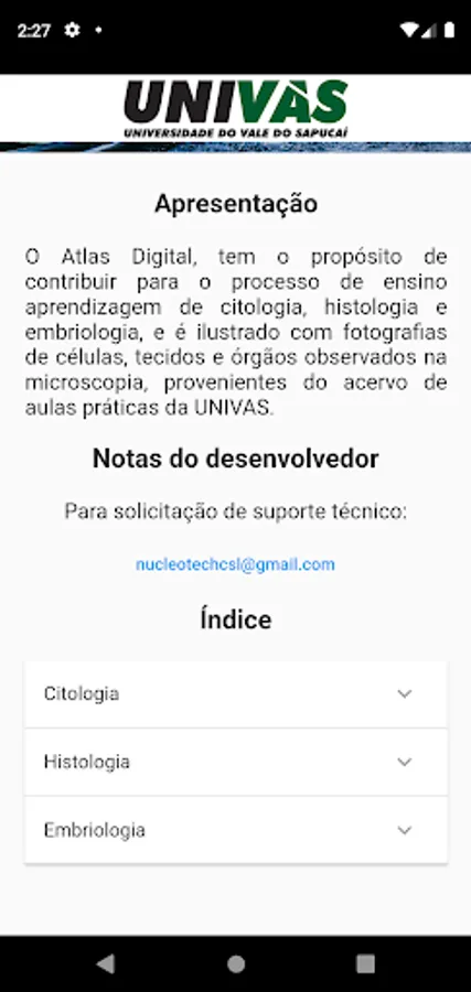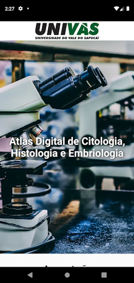 The Mobile Atlas aims to contribute to the teaching and learning process of cytology, histology and embryology, and is illustrated with photographs from the collection of practical classes at UNIVAS. The technology used in its creation allows its availability in virtual stores, especially the Play Store.