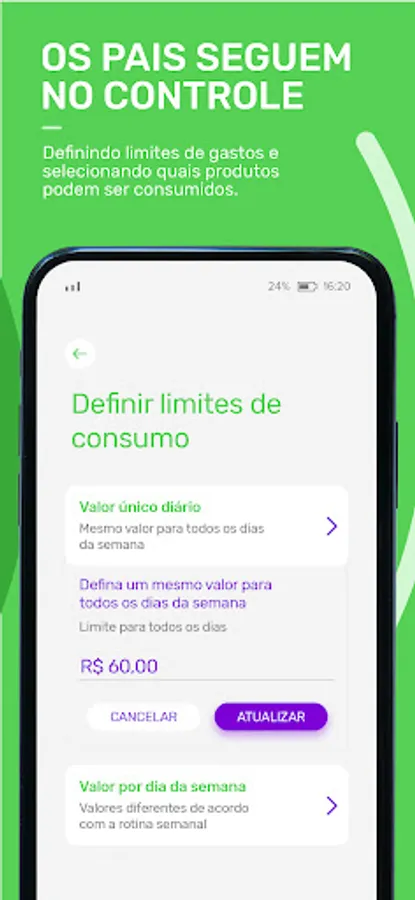 - Menu customization: block the purchase of unwanted products and set daily financial limits.