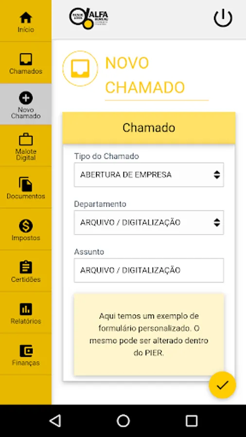 The ALFA BUREAU app is direct access between company and accountant, exclusive for Alfa bureau accounting clients. Used to send files, request services, track processes, all in a practical, safe and fast way.