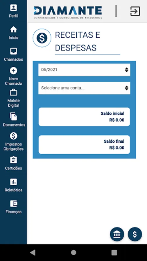 The Diamante Contabilidade application is the link between your company and your accountant, exclusive to Diamante Contabilidade's clients. Used for exchanging and storing files, service requests and process monitoring. All of this in the palm of your hand!