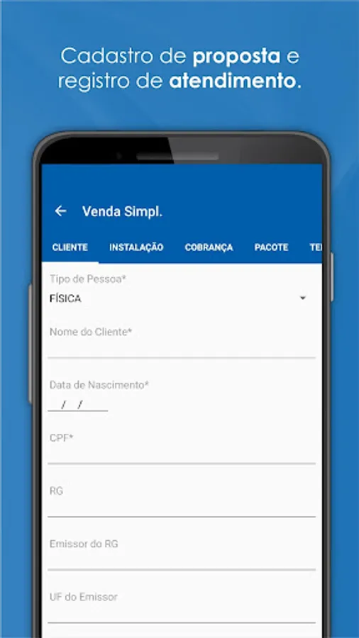 Through the application, sellers research the feasibility of installing, cadastram sales proposals, capture images of documents and digital signatures, streamlining the process of sending this data to sales validation. All this easily and digitally.