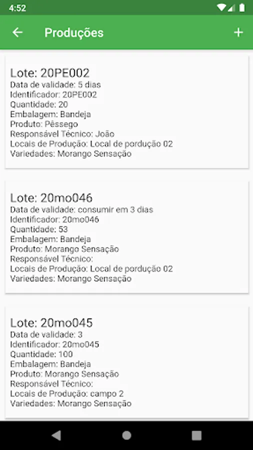 With the Origin Guaranteed app you make records of the food produced, linking lot codes and locations to each production. In addition, it is possible to record all the information required in the field notebook, such as sowing / planting, product application, management and harvest, with report generation. Best of all, all records can be made offline, directly at the production site. Then just connect to the internet to synchronize the data, which is available on a web platform.