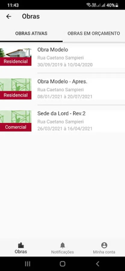 The Obrafit app allows the remote participation of users registered in the system and the management of their works remotely, through mobile device technology.