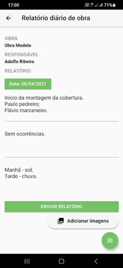 The Obrafit app allows the remote participation of users registered in the system and the management of their works remotely, through mobile device technology.
