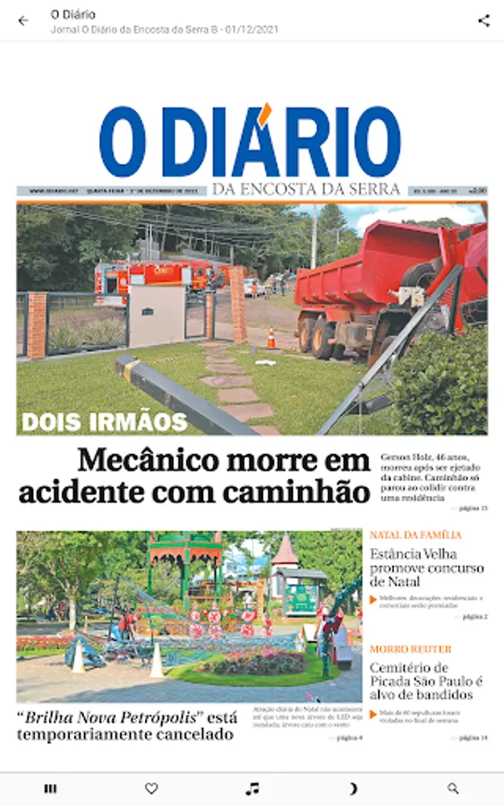 A community always needs a voice. A way to tell the world what happens. The newspaper O Diário was born out of this need and made it its mission: to make the Encosta da Serra region of Rio Grande do Sul be seen and heard. And for its residents to have access to information and content. Thus, the Diary has played, for 30 years, the role of being the link between people in the 11 cities where it circulates.