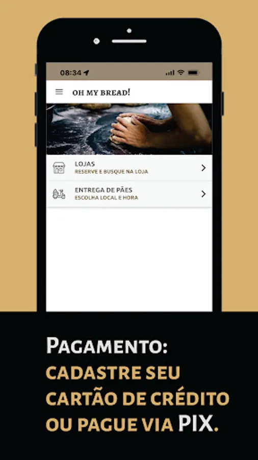 Buy through the App and pick up your breads at the Store closest to you. Or ask for Delivery, with the possibility of zero delivery fee. In the Oh My Bread App you can view all the products from your favorite store in real time, you can consult the information of each product, make purchases or order delivery. Payment is made on the App itself, via credit card or via PIX.