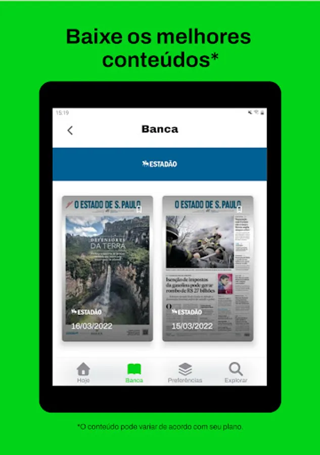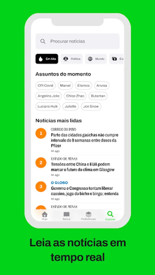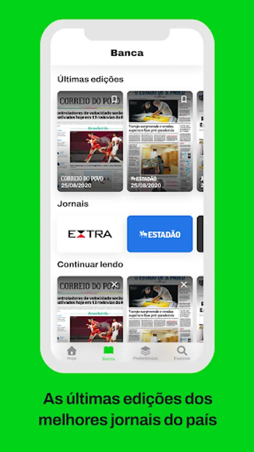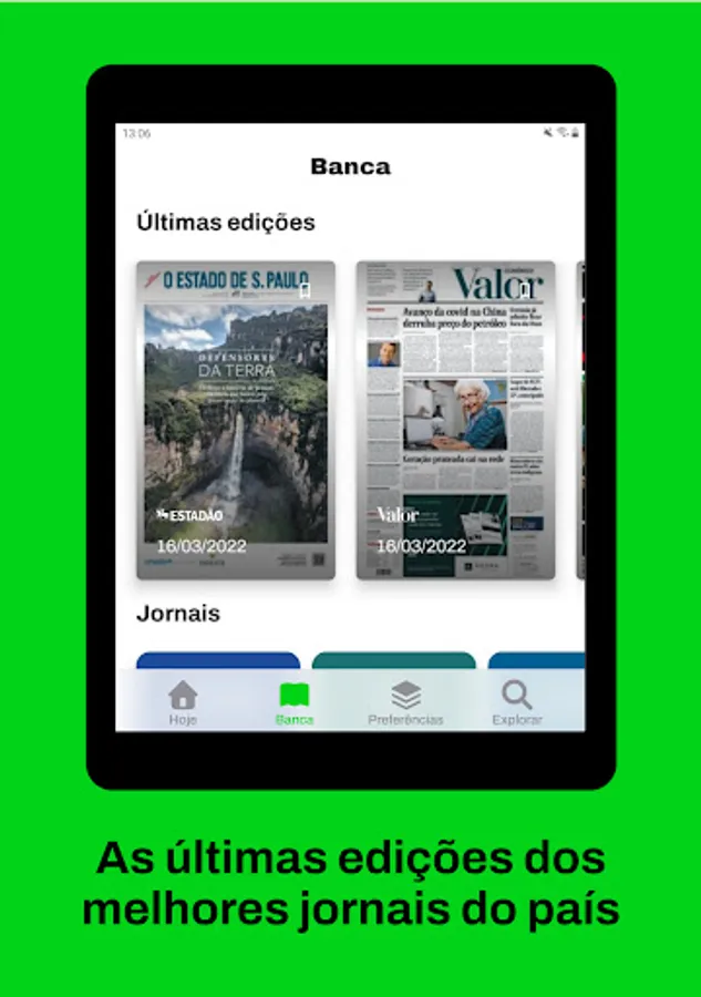 The application has complete editions of printed vehicles with news on Politics, Economics, Sports, Health, Technology, Education, Entertainment and more.