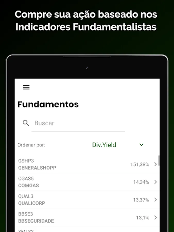 - Fundamentalist indicators such as dividends, Price / Profit, ROE, ROIC, among others ...