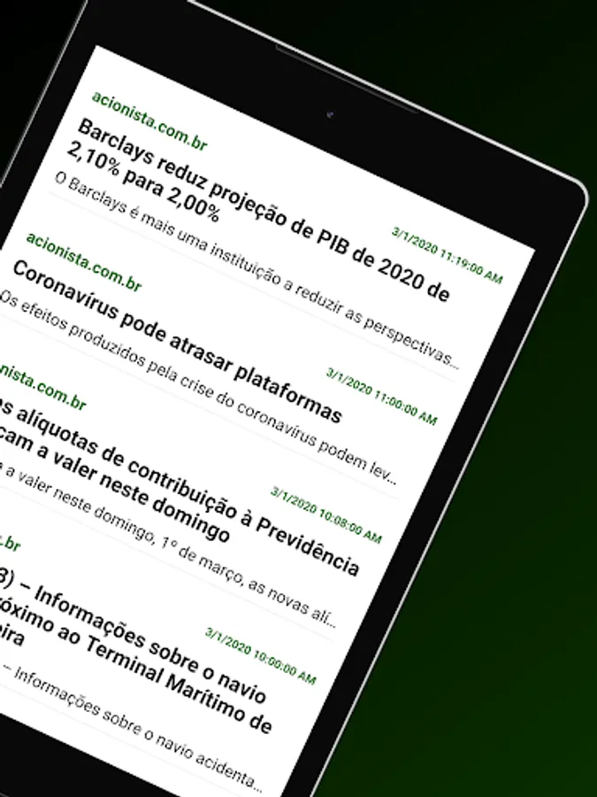 - News channel from major sources such as Infomoney, Investing, CVM, among others ...