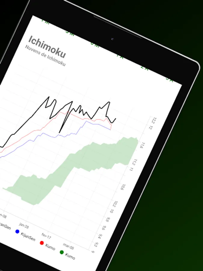 - Combined Ichimoku cloud, IFR and OBV (on Balance Volume) graphics;