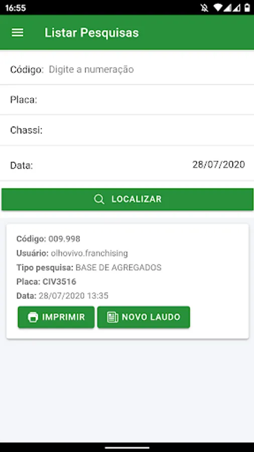 Application to carry out vehicle searches and generate a Precautionary Report, using the AutoSCORE system.