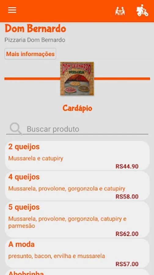 Pizzaria Dom Bernardo has the priority of always working with high quality products. The differentiated service to its customers and the affordable price make Pizzaria Dom Bernardo the reference of Bairro do Jd. Of health.