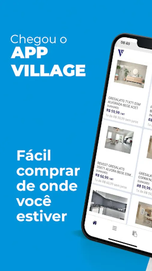 Village mobile app, buy online, receive at home or withdraw in our store!