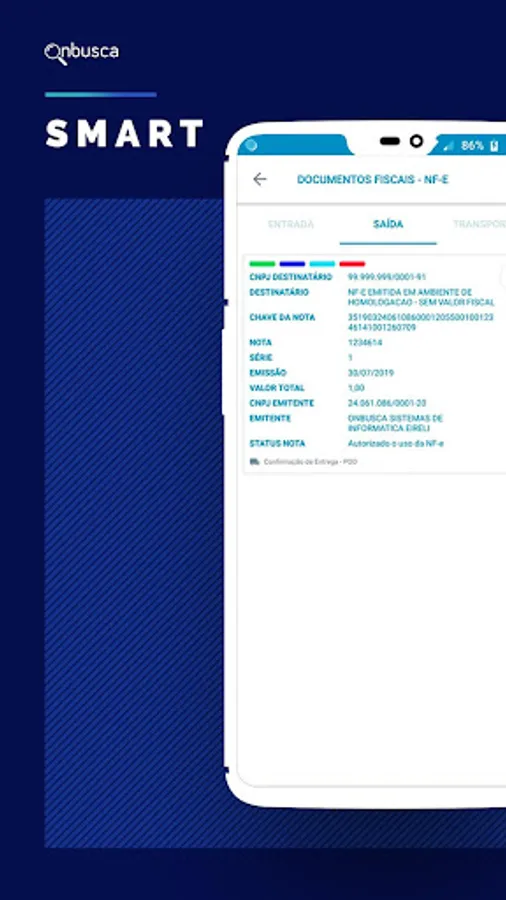 Have your incoming notes grouped together in one place, just waiting for the goods conference. With Onbusca Smart, the whole process is done through mobile devices.
