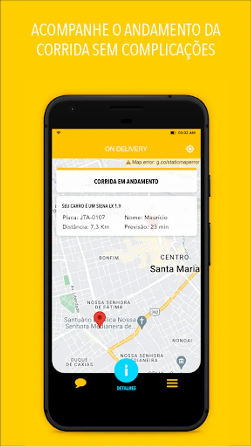 Our application allows you to call one of our motorcycle taxis and follow the vehicle's movement on the map, being notified when it is at your door.