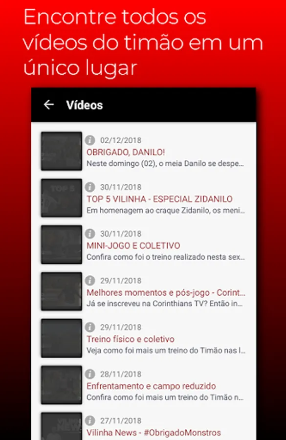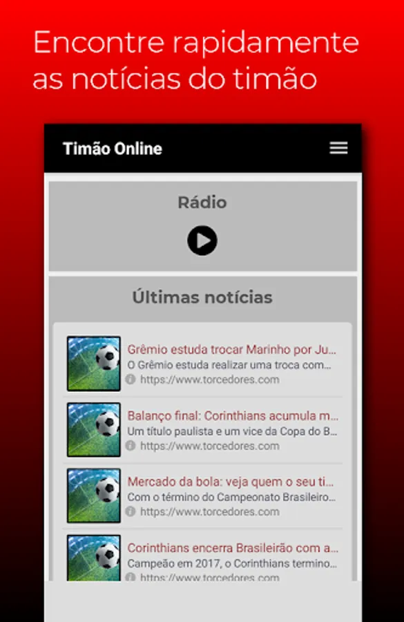 This is an application made with the opinion of fans, here you will find all the news of Corinthians in full integration, so that you fans know everything that happens to your team!