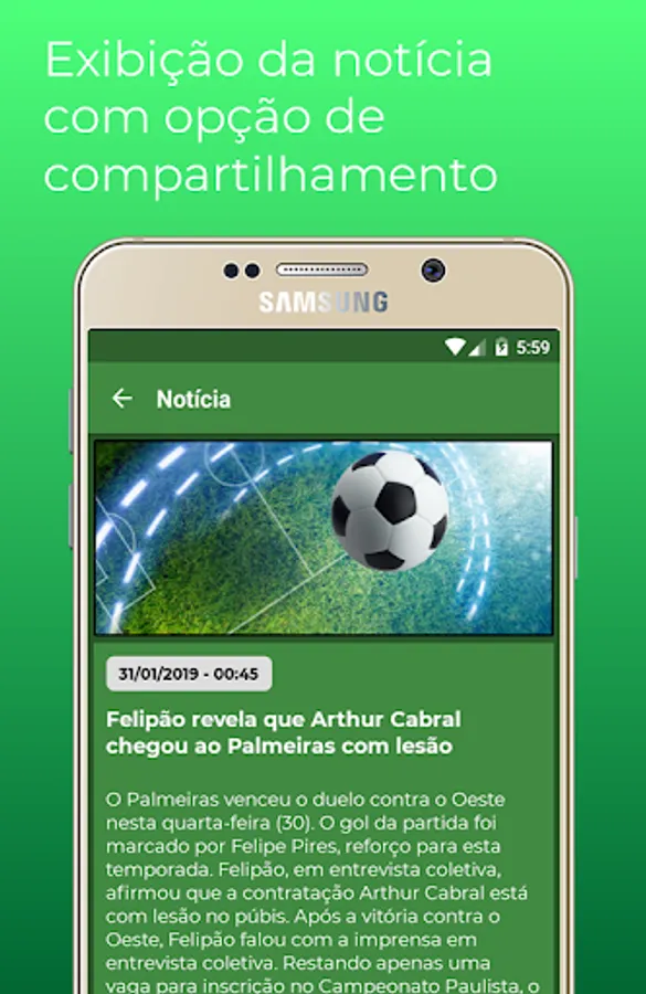 Stay tuned for the latest news from Palmeiras, a sports application for you to know everything that happens to your heart team at any time, with real-time updates!