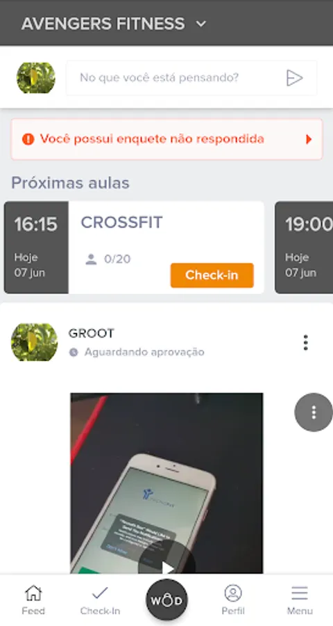 The 1UP Crossfit App is an exclusive application for 1UP Sports Complex customers and allows you to view the WOD of the day and perform your check-in simply and quickly. With just a few taps, you'll be able to post the training result and track your placement in the general ranking of the day, in addition to accumulating points for your fitness level ranking.