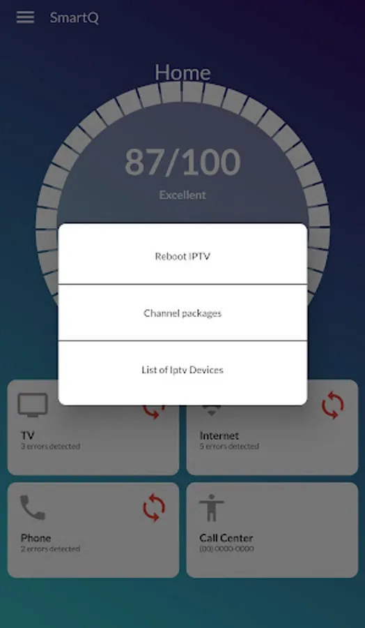 With the SmartQ Selfcare application, the customer himself can manage and also resolve several possible errors in his network, automatically, without the need to contact the service of his provider.