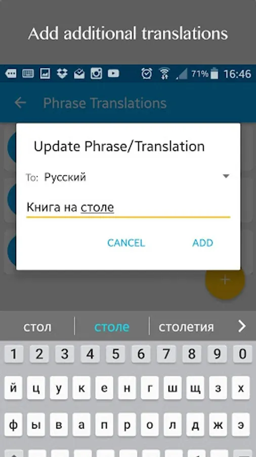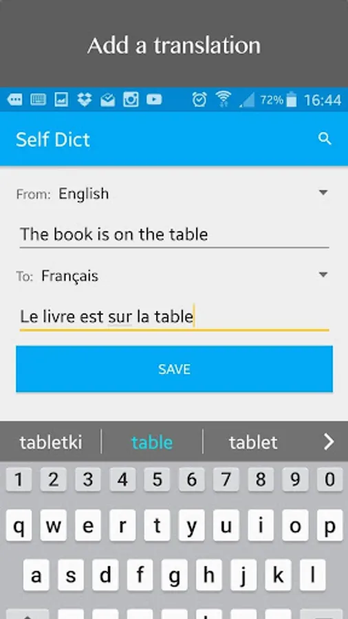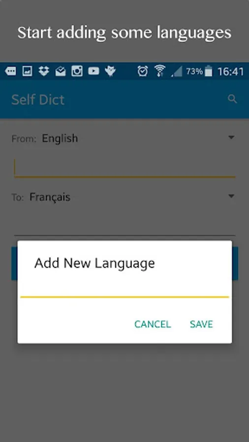 If your learning one or more languages, you can use this app to save all words and phrases as you learn them. You can add as many languages as you want. You can search for saved words in any language and see all translations you have added for it and the contexts in which the word is used.