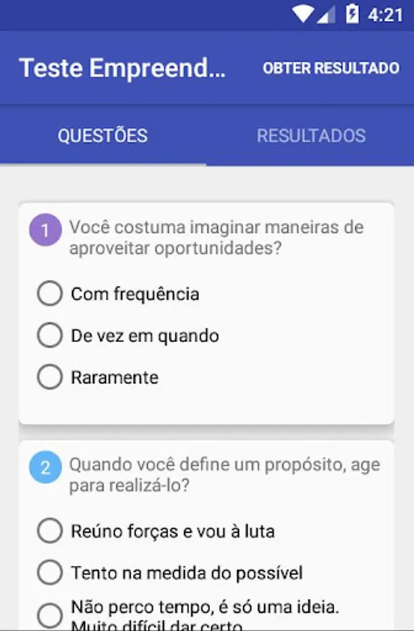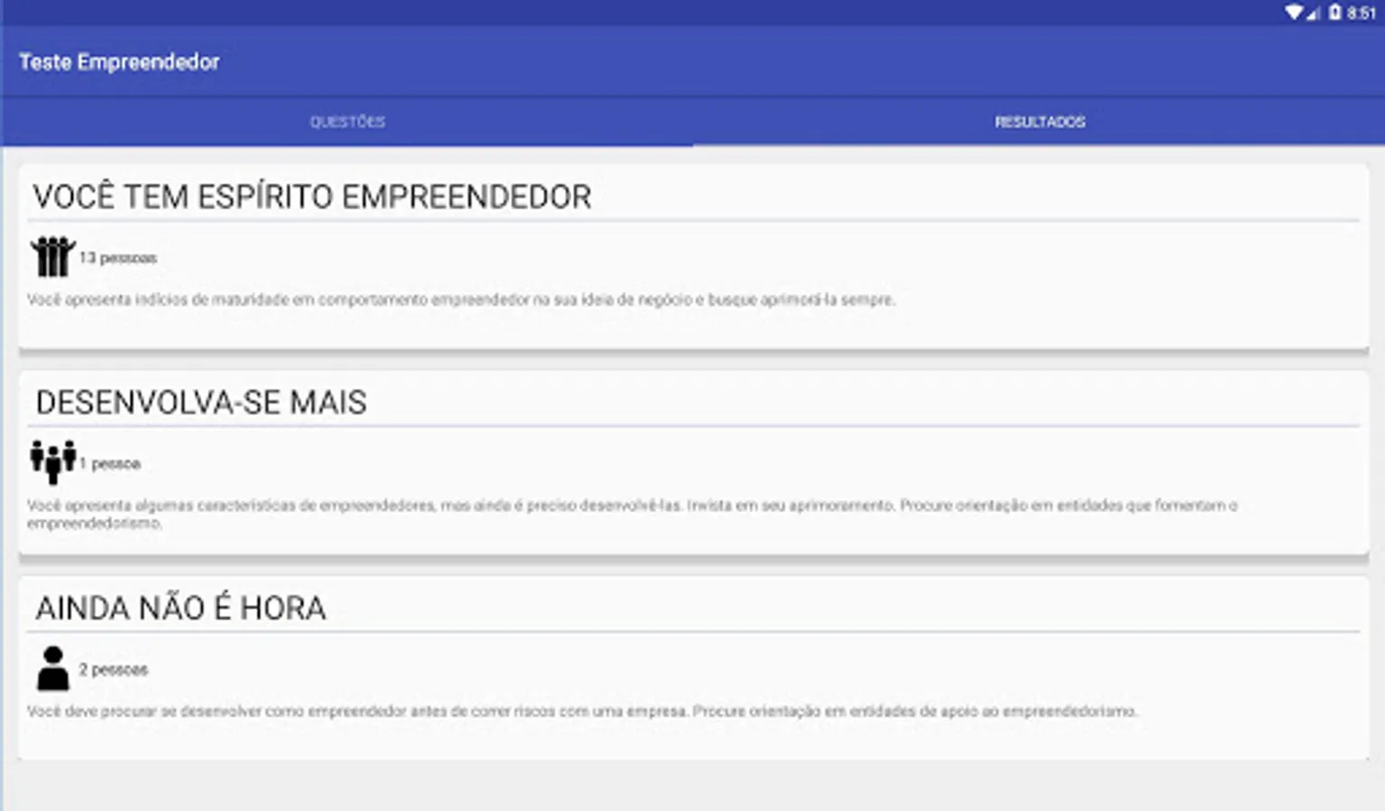 Use the app to get your individual result or to make a survey of a group of people.