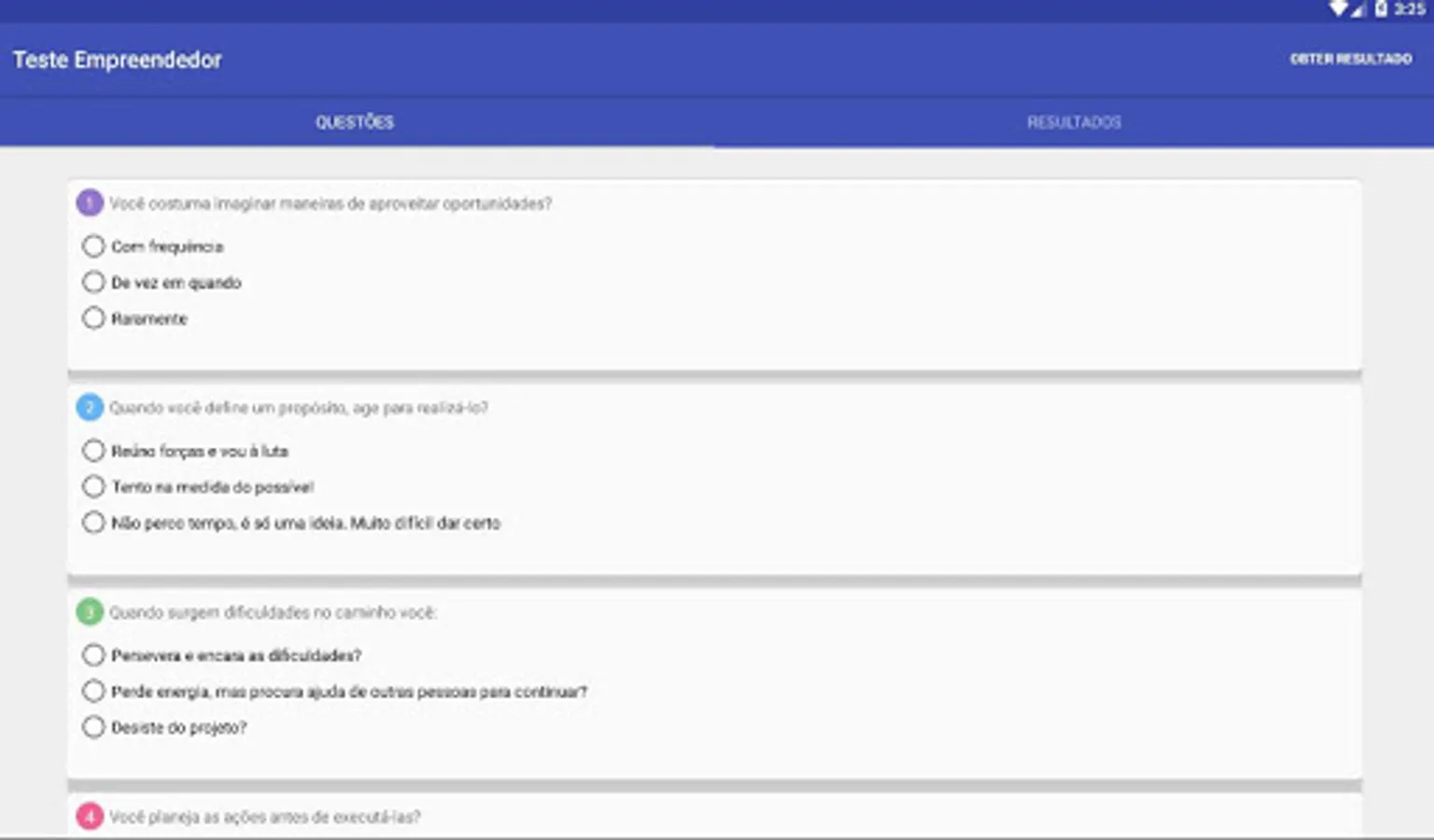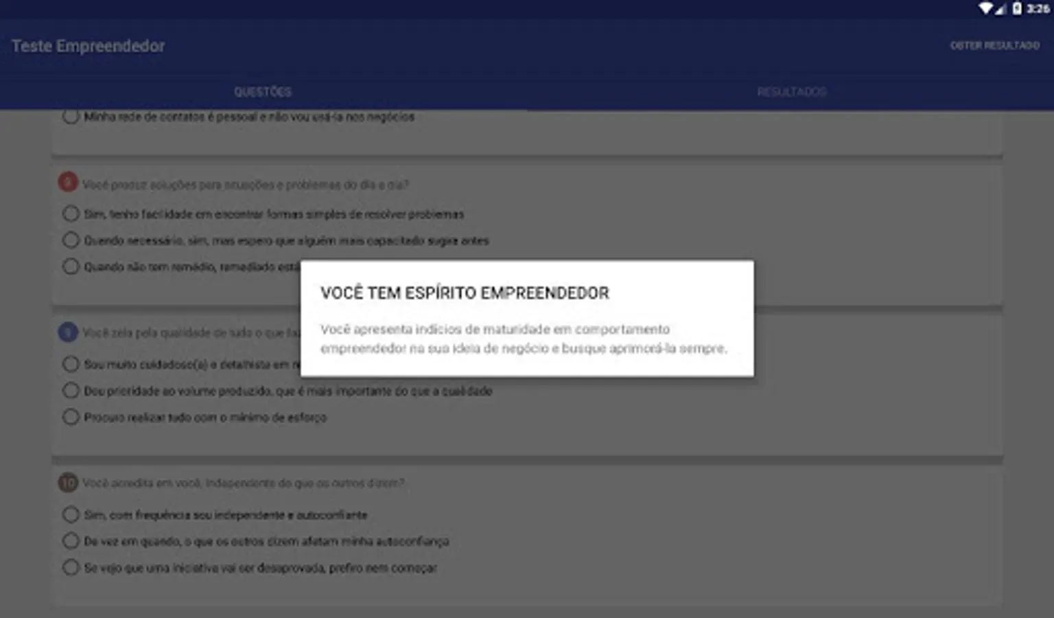 The application presents a series of questions and presents a diagnosis after the answers.
