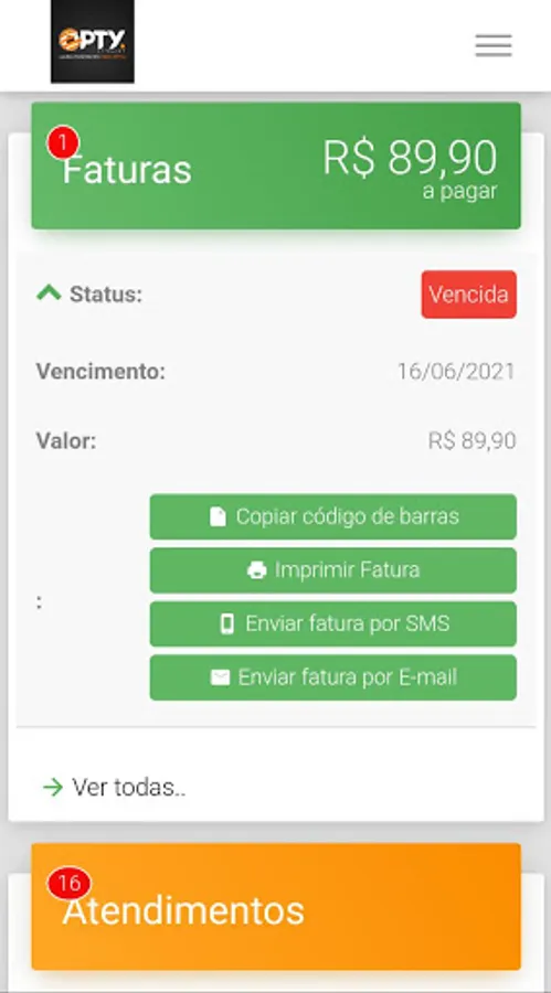 In the Opty Internet application, you can easily access your contracts, sign the contract, withdraw bills, check debts, request temporary unlocking, open a technical call and much more!