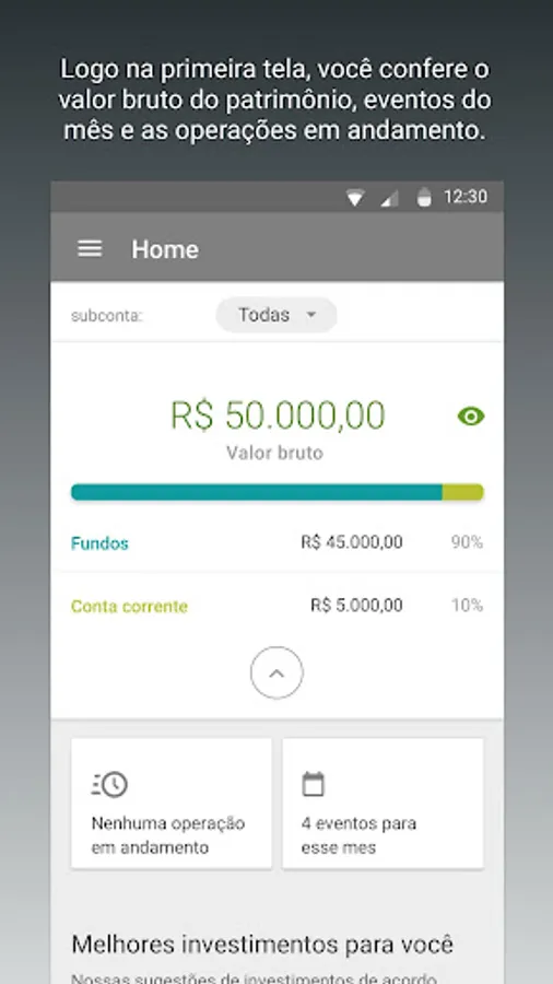 With the account open, you transfer your resources by TED, DOC or transfer between Bradesco or Itaú accounts, and you can start investing in our online platform.
