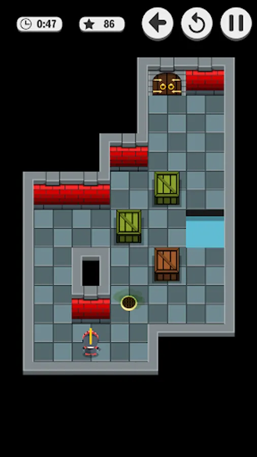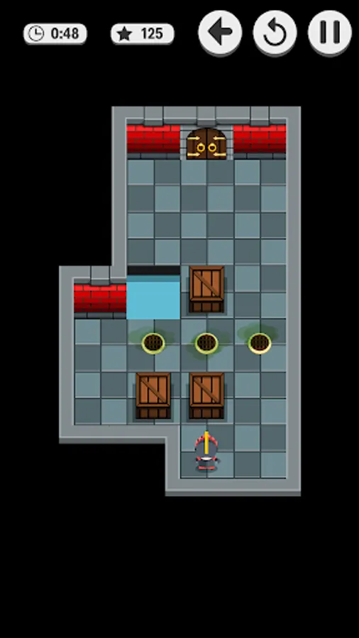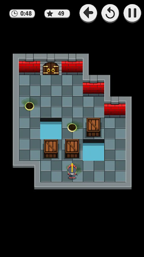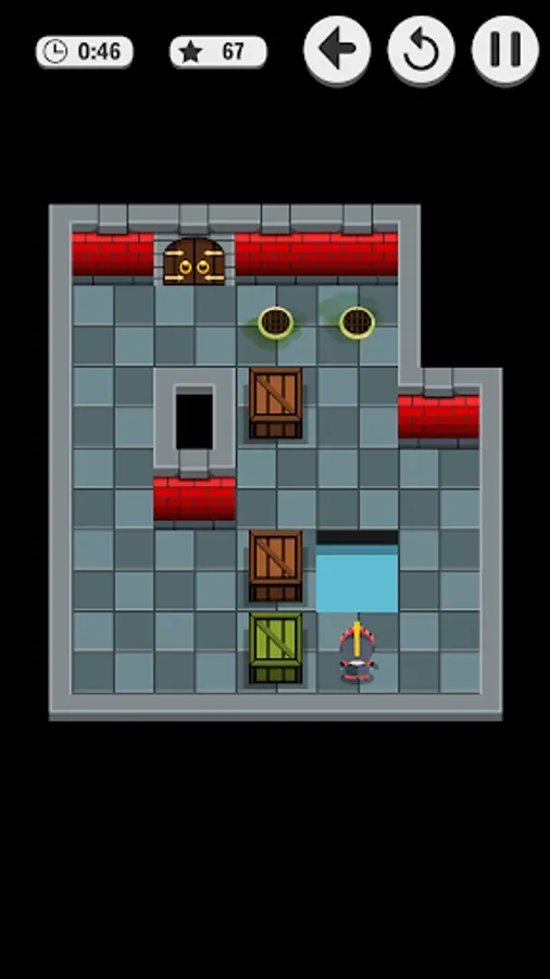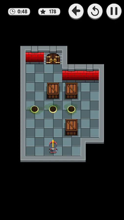 Soko Dungeon is a puzzle game with many levels. The goal is to push boxes to the right place to stop a poisonous gas to fill the room. When there's no time left the poison affects the little knight and he is defeated!